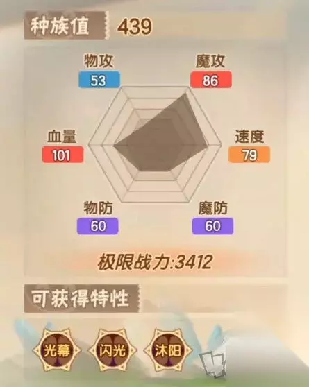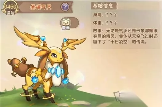 4.圣耀奇灵 最后介绍的精灵是圣耀奇灵,这位也是神兽。本身的种族值较低,是439。本身的物攻为53,魔攻86,速度则是79,双防比较高,是60。血量则是101。总体的属性数值更偏向是防御类型,输出能力则是有些低。