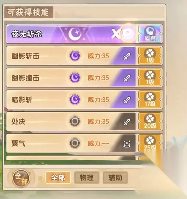 这位精灵的特性有三个,首先第一个是光幕,这个特性可以免疫对手对于自身使用的辅助技能。第二个特性是闪光,这个特性在登场的回合可以让自身的闪避增加100%,第三个特性则是沐阳,这个是在烈日情景下会增加自身的技能威力。