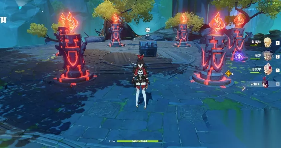 第二个机关 第三个机关: 根据特殊的顺序来射击火柱就可以了。 玩家以随意一个点亮的机关作为1. 然后顺时针对雕像进行编号,分别射击2→6→4 就能够完成解谜了。