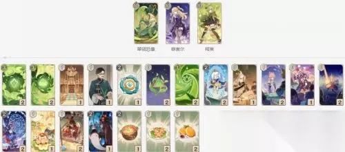 NO.1 双草皇女激化 菲谢尔首发,有蔓生之草的话先放蔓生之草,然后施放元素战技后切柯莱使用天赋卡,如果没有的话使用元素战技或切翠领恐营使用天赋卡和元素战技均可,总之对局中尽量触发激化反应。双草激化卡组中即使有一个草元素角色倒下仍能打出反应,菲谢尔则可以召唤奥兹后退到后台防止暴毙3.墓生之草的加伤效果和翠翎恐的“活化机能”使得这个卡组有一回合内击败一名满血角色的能力。