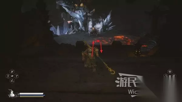 《黑神话悟空》璧水金睛兽是第五回隐藏地图的最终BOSS,那么该如何触发璧水金睛兽的战斗呢?下面为大家带来《黑神话悟空》璧水金睛兽打法指南,希望能帮助到大家。 第五回妖王-璧水金睛兽 游记位置 位于游记第五回妖王词条【阴阳鱼】的下方。 具体位置 位于碧水洞的终点,进入碧水洞必定碰到。 前往第五回的隐藏地图可查看前页“五行战车”或点此进入A大的流程跟着走。 击杀奖励 BD推荐 棍法点到四棍势,然后棍法选择劈棍与戳棍(战斗时切换),奇术选择安身法,其他随意选择。 招式解析与应对方法 璧水金睛兽一共有三种形态,第一种形态就是玩家一开始遇到的那样,第一场战斗时前方下图画圈所示的冰缝位置,一直躲避敌人的攻击。 等待璧水金睛兽吐火时即可烧化此处的冰,玩家这时就可以通过冰缝走到下一个区域,然后璧水金睛兽也会追到下一个区域进入第二形态;下面先介绍第一形态的技能。