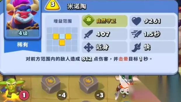 这里的核心角色就是米诺陶,米诺陶在游戏当中属于一个冲锋型的角色,他本身的防御是有的,而且在输出上面也并不弱,所以在游戏当中,它的生存能力就凭靠蛮力这个技能直接将敌人撞飞,而跟狮鹫搭配的话,狮鹫主要是出米诺陶来利用他的技能进行收割就可以了,阵容里面还额外搭配了果冻骑士,果冻骑士一般来说都是跟米诺陶一起放在前排的,因为它的防御数值是非常高的,所以适合放在前排,可以保护其他的成员在受到大量伤害的时候也保持后续回合的正常行动,这其实也是整个队伍最有防护效果的角色了。