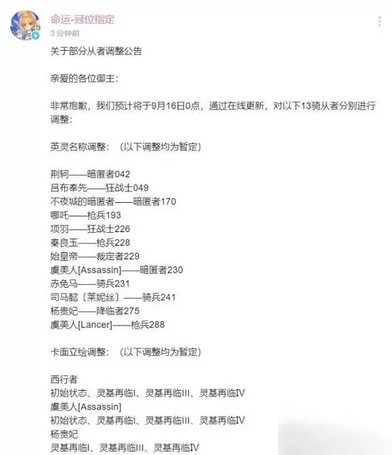 近日,FGO(命运冠位指定)的游戏厂商就表示将会在下个版本对游戏里的历史人物英灵名字进行更改。其中包含始皇帝、杨贵妃、司马懿等多个历史人物。