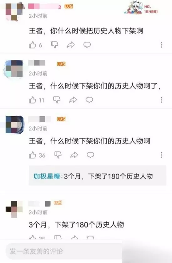而在王者荣耀官方账号的评论区,也出现了许多不理智的留言。部分FGO玩家质问王者荣耀什么时候能下架历史人物,甚至讽刺王者荣耀是“天龙人”游戏,高高在上,是不需要下架历史人物的。