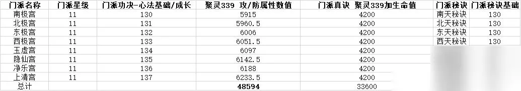 注意: 1.十星门派一共有9个,攻防一共需要18个技能点,没满书的顶层万氪请留好技能点。 2.十星门派有加血的技能(如太一真诀等),不受灵根加成,一个加3000多血,很鸡肋,没有技能点就不用学了。 3.十星门派的秘诀比青云决还强一点,很值得学习。 仙尊境界可以进入8个11星门派,叛教声望是200万一次。以下是门派列表: