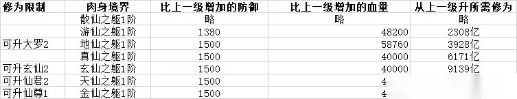 目 录 前言 1.修为篇--大罗金仙-仙尊的修为和肉身升法 2.门派篇--魔神宗及魔殿的通关属性、隐世门派、十星十一星门派 3.属性篇--龙元丹的炼制、技能点攻防的取舍、真伤的获取 4.功德篇--高星界主和界主车、功德树 5.刷图篇--福地遗址、仙丹仙器 6.秘境篇--秘境的通关和刷法 7.轮回篇--轮回、成就、业力淬体 8.洞府篇--聚灵339的升级方法,聚灵537 8级技能展望 9.神界篇--后续再补充 10.一些杂七杂八的东西:法会、一路向西北东、龙谷凤池、阵法等 前言: ios最早的玩家已经超过6万5千年,最强的几位大佬已经登临仙尊境界,鬼佬十一星门派的饼终于还是有人吃到了。 安卓方面,大部队发育肯定会比ios快不少,前几个区的大部队大概再过2-3个月就普遍玄仙了;大概年底左右,第一批聚灵339诞生,这个游戏也将步入真正的后期。后期怎么玩?真诀、顶层、万氪、巨佬,我们都有光明的前途(富贵笑)。 最近的几个版本,鬼佬不停地放新东西出来,基本都是为了增加后期的可玩性。能够跟上的玩家基本都吃到了第一波红利,稍微佛系一点的,可能就会一脸懵逼。这次攻略也会具体说明一下鬼佬的更新,大家查缺补漏就好。 攻略里也会放一些新的图表,有些有人引用过了,有些是引用的别人的,有些是新做的。希望对大家有所帮助。 1.修为篇--大罗金仙-仙尊的修为和肉身升法 修为:大罗金仙,玄仙,仙君,仙尊、准帝仙、帝仙、准圣、圣人、1-18转圣人。 PS:大家想看境界可以去天外天打小妖,天外天小怪和Boss的境界都奇高,好像兜率宫小妖是5转圣人。 肉身:散仙之躯、游仙之躯、地仙之躯、真仙之躯、玄仙之躯、天仙之躯、金仙之躯。 大罗1-2需要达到地仙之躯1阶,玄仙1-2需要玄仙之躯1阶,仙君1-2需要天仙之躯1阶,仙君10-仙尊1需要金仙之躯1阶。再后面,肉身就没有要求了(或者说,把肉身需要的经验增加到了修为里面,后面修为递增的速度远超前期)。 下表是肉身具体所需经验。