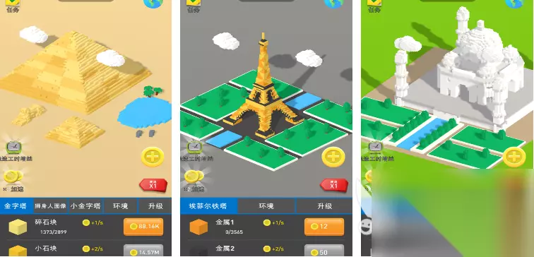 《建造大亨》这款游戏内也有金字塔,只不过金字塔需要利用金币来解锁,前期金币不足的话可以先建造其他建筑物,每个建筑物建成之际,都会得到系统的恭贺信息,如果想要在朋友圈炫耀的话也可以一键分享。除金字塔、狮身人面像、法老猫等建筑物,游戏中还有自由女神像等其他知名建造。新手玩家建议先去升级超级工程队,工程队等级越高,建造的建筑物时间就越短,后期获得的金币就越多。 高速下载 普通下载 3、《建造大师》