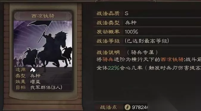 三国志战略版西凉铁骑是一种特殊的骑兵兵种战法,属于S级战法,主要通过拆解武将马腾获得。该战法的核心作用是在战斗前3回合提升我军全体11%-22%的会心几率,触发…