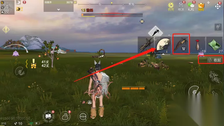 一、如何捕捉 (1)捕捉宠物: 1、玩家在捕捉宠物之前需要先储备好“捕捉枪”,这个是专门用来抓宠物用的。游戏前期系统会教大家大家制作一个捕捉宠物,不过捕捉枪是有耐久度,当耐久度没有之后捕捉枪就会坏掉,玩家需要重新合成制作一个捕捉枪才行进行捕捉。 2、大家在得到捕捉枪之后需要把这个武器等级在道具栏里,点击左下角位置的“背包”按钮,在背包找到捕捉枪并点击登记到道具栏即可使用。