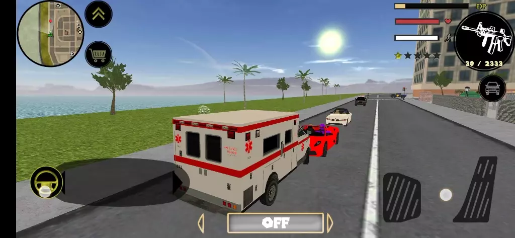 这是手游《火柴人绳索英雄》的游戏画面展示,画面中呈现了驾驶不同车辆在城市、滨海区域行驶,还有火柴人角色互动的游戏场景,展现了游戏的开放世界驾驶与角色互动玩法。
