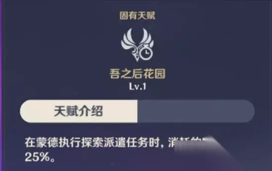触发条件:在场的角色的攻击触发的雷元素反应,而奥兹的伤害属于菲谢尔,所以当菲谢尔在后台时,奥兹的攻击触发的雷元素反应无效,反之则有效,此天赋就和元素反应一样,没有冷却时间,但只有触发元素反应的那次攻击会产生效果。 注: ————————我是分割线———————— 固有天赋·吾之后花园