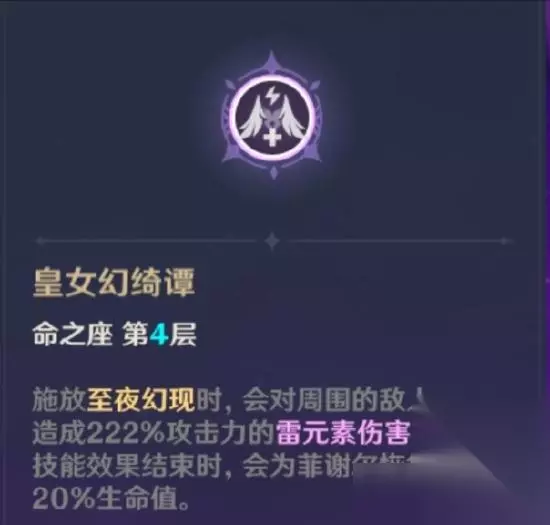 命座效果:如图,提升元素战技等级。 ————————我是分割线———————— 四命·皇女幻绮谭