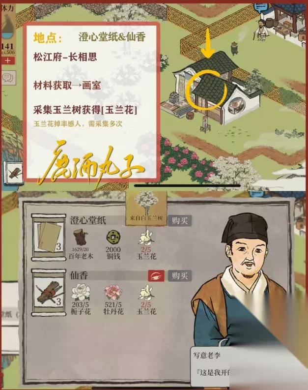 图3-澄心堂纸&仙香 材料兑换→画室,采集白玉兰即可获得[玉兰花] 注:玉兰花掉率略低