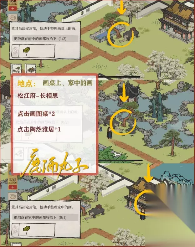 图2-整理画图桌&家中的画 点击画图桌&陶然雅居进行整理获得画作