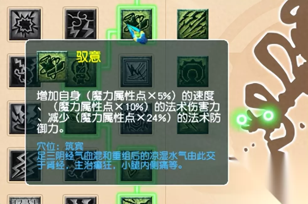 按照1000点魔力属性点来算,那就是增加50点速度,100点法伤。降低的法防不算什么,法系从不缺法防,但是法系最缺的速度法伤都有了。 甚至我觉得,魔力属性点不到600,加不到60法伤,也比中间的纯60法伤经脉强。就是因为这个还能加几十点速度。 四丹左右都是增强天雷灌注效果的,这个技能就不用考虑了。任务不会有人看你先浪费一回合掉血起状态,还是建议点中间的,掉血解封。