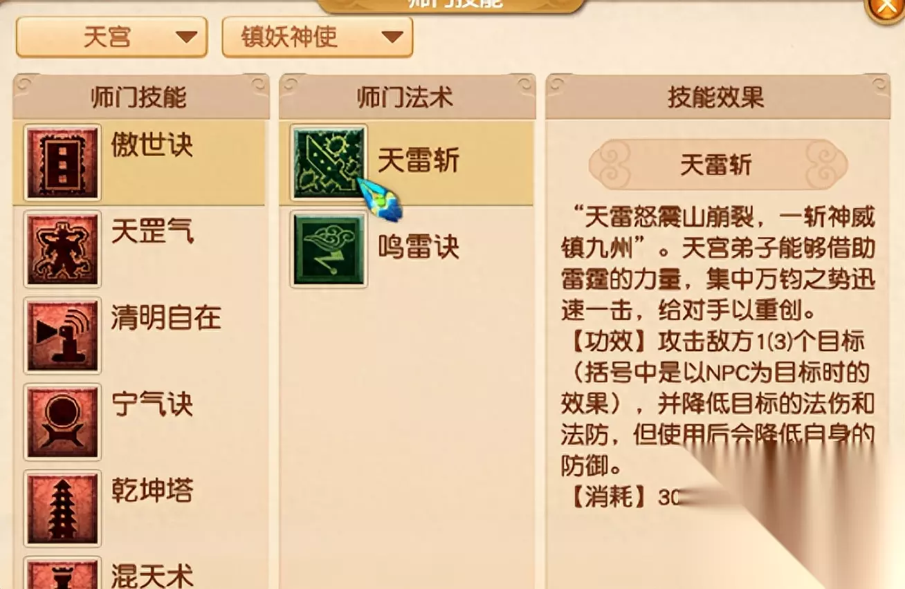风雷斩论单秒倒是比天雷斩高,也只能打一个。 两个强化技能,一个强化后单秒更高,另一个强化后可以秒三。 任务不会给你一回合时间强化的,这个可以忽略。 给的被动技能,返璞,法术驱动的物理伤害都提高,对天雷斩是有效的。