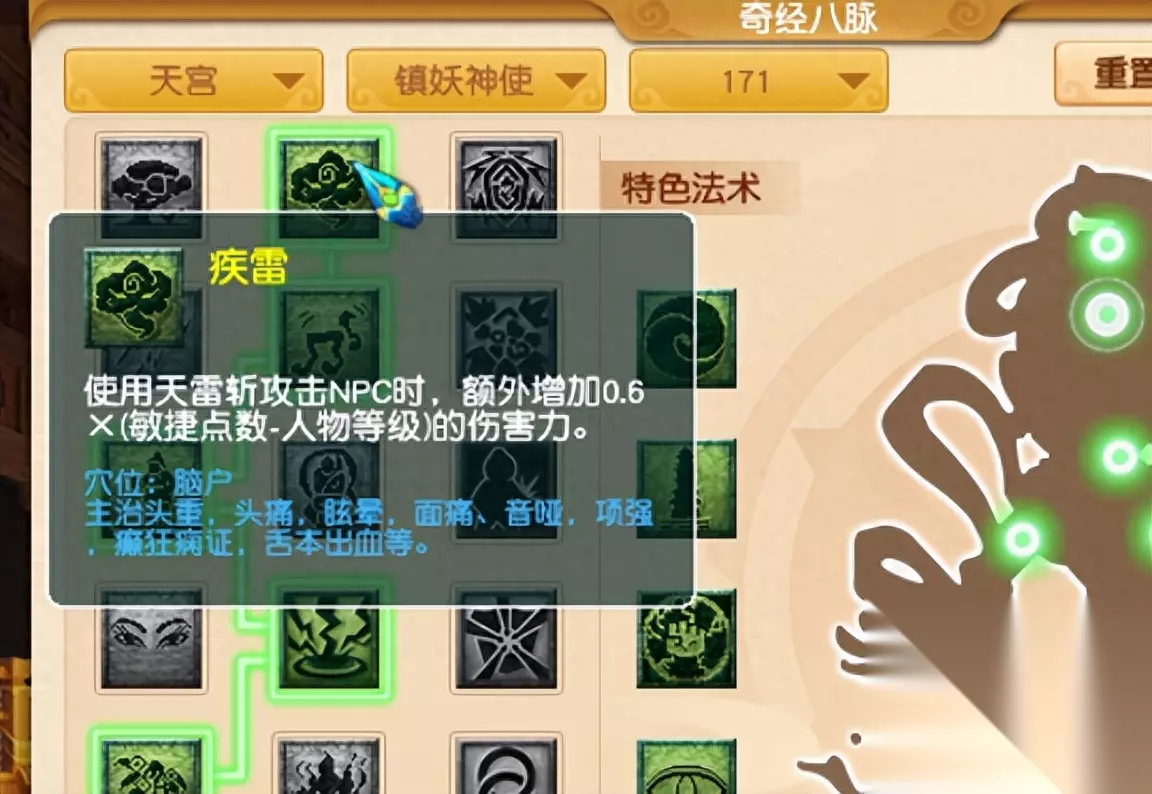 一定要配合三丹的惊霆,开场自动获得4回合单秒强化。 这就保证,前两回合内的风雷斩单体输出爆炸,抓鬼是很爽的。 其余经脉争议不大,甚至觉得都不用开丹,新区低成本抓鬼天宫,最多开到三丹就够用了。