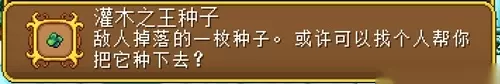 灌木之王掉落的【灌木之王种子】。灌木之王是支线任务“盛开于谷仓中的斗争”的 boss,击败后必定掉落种子。