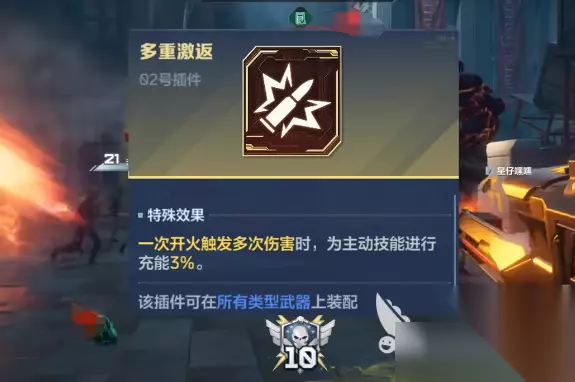想让死亡猎手触发无限狂热流派,那首先要搭配的就是2号插件多重激返,每一次触开火,只要能触发大量伤害,枪械会自动恢复3%的充能,利用这一项设定角色不但可以装填弹药,还可以保证能力的持续性,利用插件可以补充枪械主动技能的不足之处,只要场景里的怪物数量足够多,每一次攻击不止弹药能恢复,能量也能不断恢复,可以保证枪械在整场战斗中都会以较高的能量射击。