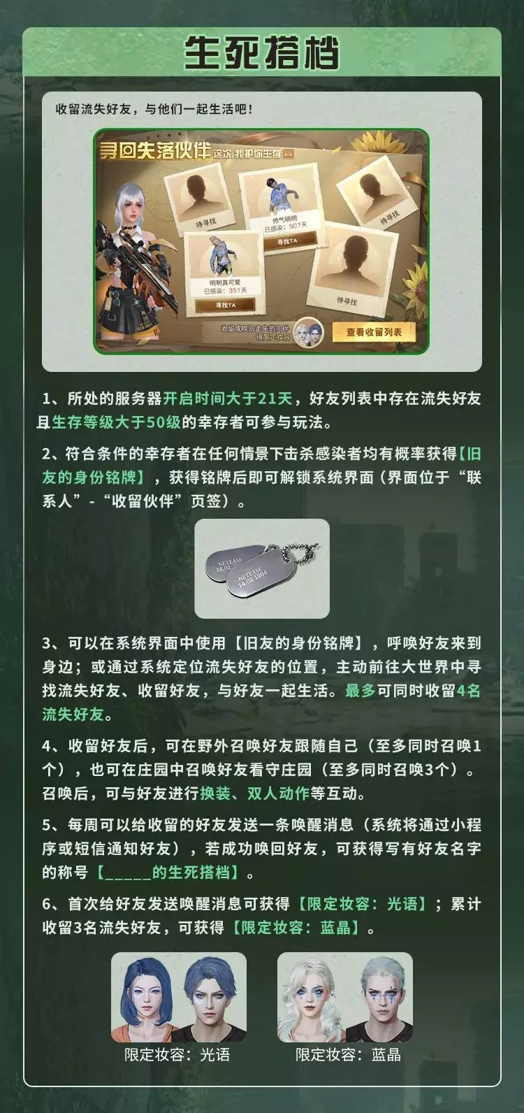 幸存者仍可随时登录体验现有内容