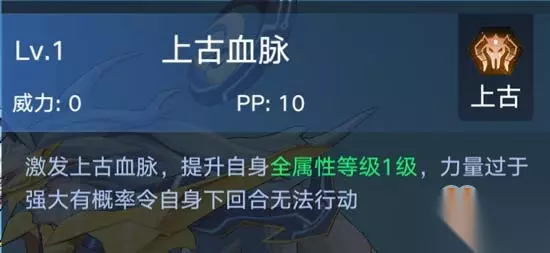 神武月技能 1、上古血脉:可提升自身全属性等级1级;
