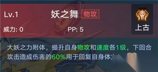3、妖之舞:可提升自身物攻和速度各1级;