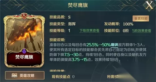 《文明与征服》多元文明的交锋,穿越时空的博弈,你能在这广袤的沙盘世界攻城略地,也能观看不同疆域和时代的历史英雄同台竞技,更能在这瞬息万变的策略战场中掌握机遇。泰拉大陆每日战斗不断,各方势力互争领土,若想连战连捷,阵容搭配至关重要。 今天战略学院导师战略学院导师@顾辞就为我们带来了破甲坦克海尔曼英雄及阵容介绍,赶紧一起来学习吧! 一、海尔曼技能分析 海尔曼的技能【焚尽鹰旗】是在准备以及每回合有50%的概率嘲讽敌方1~3人,使其降低30点的防御,并提升自己与随机一名友军15点的防御。