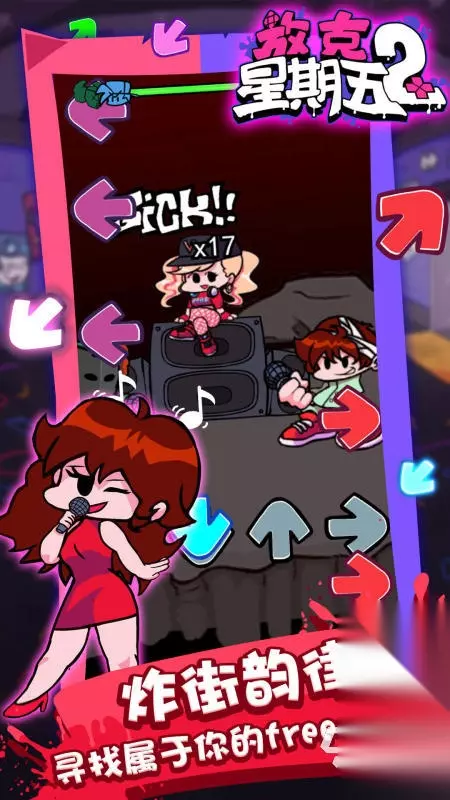官方授权移动端移植版本,完整还原PC原版体验。玩家操控主角在节奏节点精准响应屏幕底部四方向箭头指令,成功判定可削减对手生命值,失败则自身扣血。主线围绕主角争取女友及其家人认可展开,需依次挑战恶魔岳父、天使与恶魔融合体岳母等标志性角色。内置原创曲目超60首,支持周更机制,持续开放新关卡与对手。 手机扫码下载233乐园APP预约 预约订阅最新动态 优先233乐园APP下载 2、《周五夜放克跳舞机》