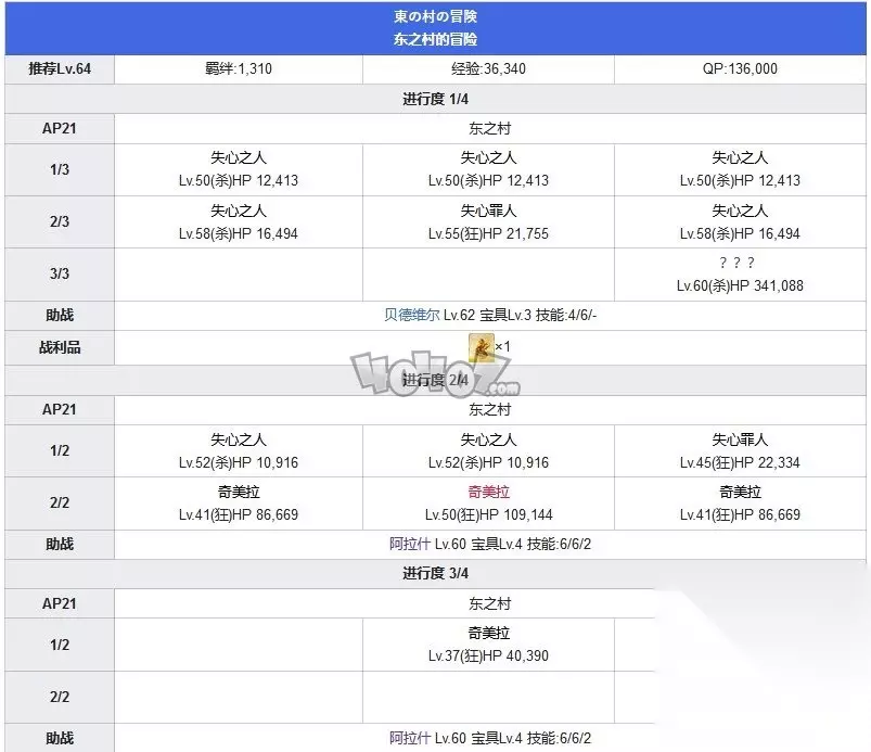 这一节的前三进度依然为普通杂兵,进度二的守护者血量较多,推荐使用弓阶进行克制攻击。进度四的猎犬攻击较高,职阶为狂阶,直接选择队伍中等级最高的从者进行战斗能够相对容易些。 第十节宴会西之村