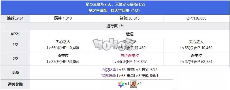 一进度敌人为奇美拉,使用战力最高的角色即可击杀。二三进度的敌人依然为失心之人和骑士的组合,可以使用狂阶或者弓阶,加快击杀的速度。最后的莫德雷德能够进行范围攻击,不过血量并不多,使用弓阶角色配合技能攻击可以较快消灭。 第八节星之三藏亲,自天竺归来