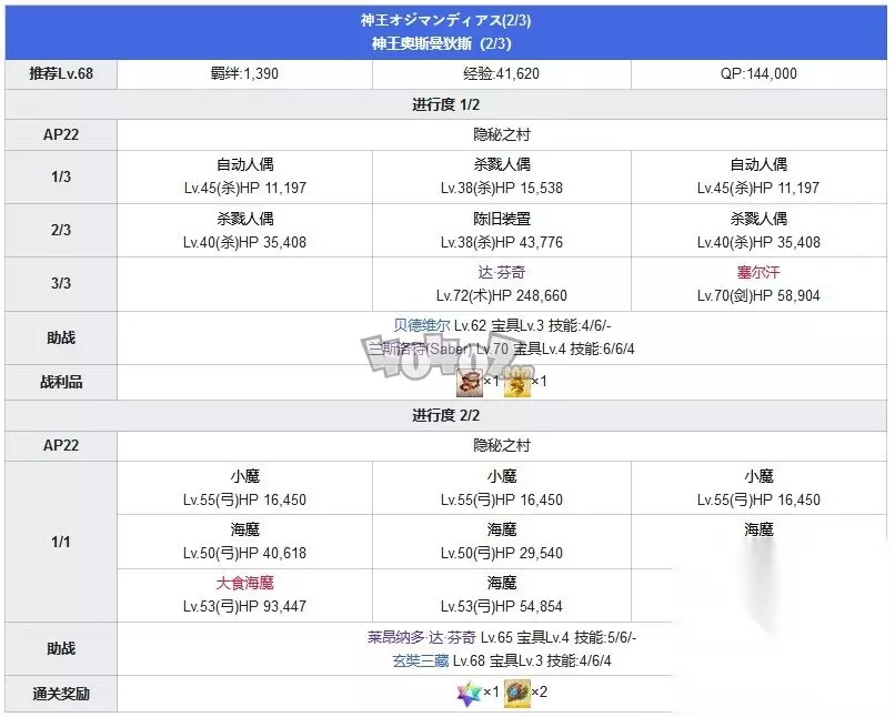 这一节分为上下两部分,上半节出现了新怪物凝视者和噬魂者。这种敌人能够对我方全体成员造成伤害,职阶分别为弓阶和杀阶,可以选择枪阶和术阶进行克制伤害。进度二的奇美拉和之前没有区别,选择等级最高的角色击杀即可。 下半节依然有新敌人马库尔,战斗方式和龙牙兵类似,可以增加自身暴击威力。这些敌人都为杀阶,使用术阶可以加快击杀效率。进度二的新敌人尼托克丽丝有几率使我方成员即死,所以要优先击杀。最后的斯芬克斯血量较多,使用骑阶角色能够加快击杀速度。 第二节太阳王的晚餐