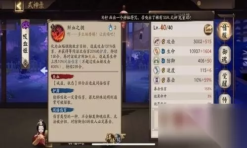 狰吸血姬。这种吸血姬需要配合椒图,2号4号攻击,6号前期中期后期暴击,大后期副属性暴击60%以上后可以换爆伤。骰子鬼吸血姬。这种吸血姬对面有控制式神(雨女,火女,兵俑等)会有奇效,2号攻击4号抵抗6号暴击。以上两种吸血姬都有一个黄金搭档桃花妖,让吸血姬放心掉血,死了复活,很不错。