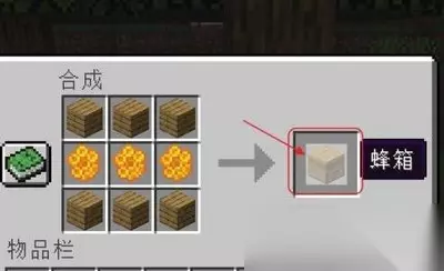 3.打开工作台,将蜜脾放在中间一排,剩下的将木板合成蜂箱。