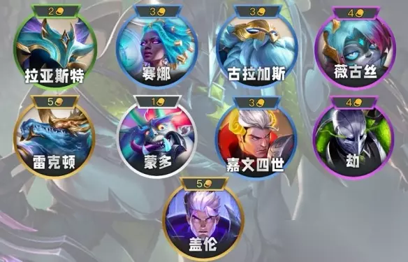 【s14阵容推荐一览】 云顶之弈s14最强阵容最新版本 1、圣灵杀手劫 阵容攻略:查看详情 阵容构成: 拉亚斯特、赛娜、古拉加斯、薇古丝、雷克顿、蒙多、嘉文四世、劫、盖伦