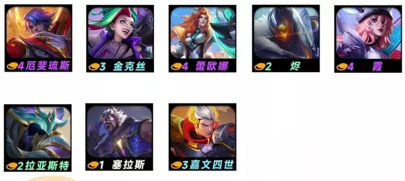 2、重装厄斐琉斯 阵容攻略:查看详情 阵容构成: 厄斐琉斯、金克斯、蕾欧娜、烬、霞、拉亚斯特、塞拉斯、嘉文四世,9级补盖伦、扎克或者鳄鱼