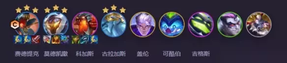 3、斗士稻草人 阵容攻略:查看详情 阵容构成: 费德提克、莫德凯撒、科加斯、古拉加斯、盖伦、可酷伯、吉格斯、德莱厄斯、阿利斯塔