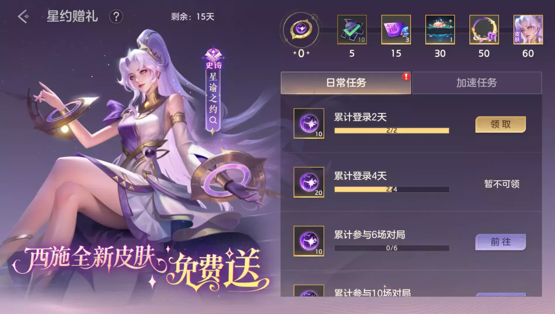 全新史诗皮肤【西施·星谕之约】免费领取!仅需2天轻松拿下!