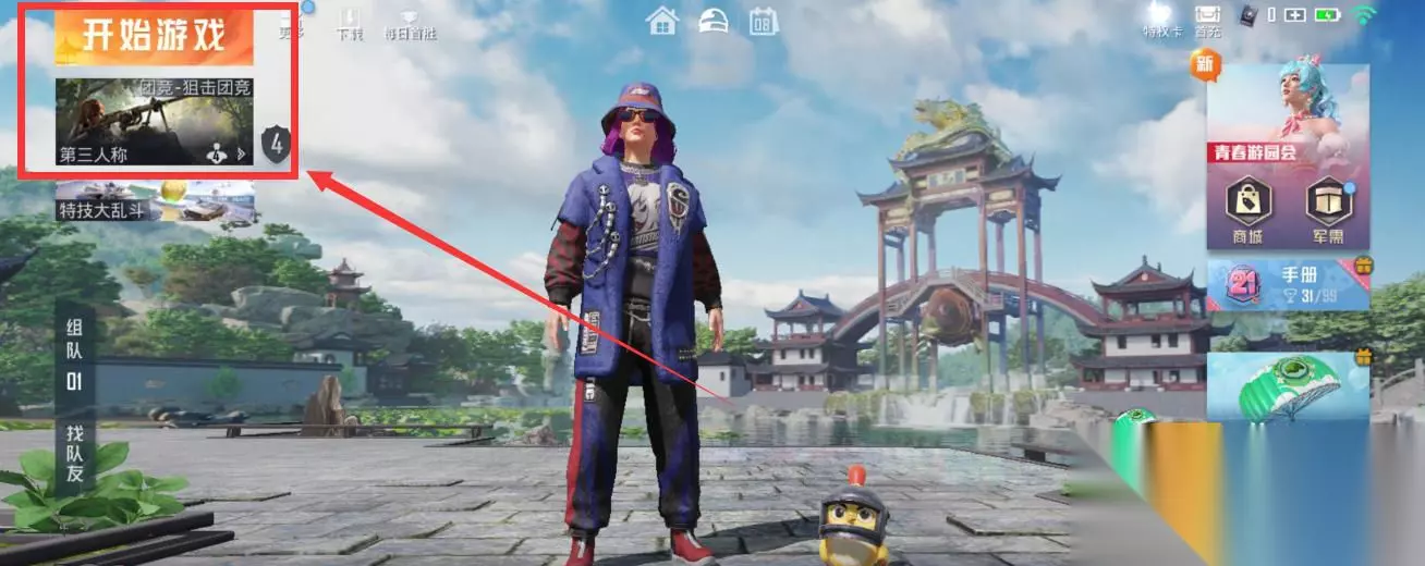 3、最后选择【团队比赛】,找到并打开【蹲着能滑铲吗】。