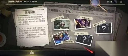 4、在海克斯大劫案中会出现很多的线索,不要被这个界面的表现迷惑,随意点击一个场景进去都可以,开启“前往调查”。
