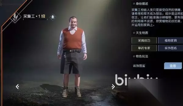 首先是收集器,因为在游戏初期,大家肯定会需要各种材料。当你选择这个职业的时候,你会发现他有自己的收集天赋,可以帮助你收集各种材料,而且他也有天生的天赋。植物专家可以自动识别游戏中的植物类型,保存有用的植物带回家,甚至可以制作家具。