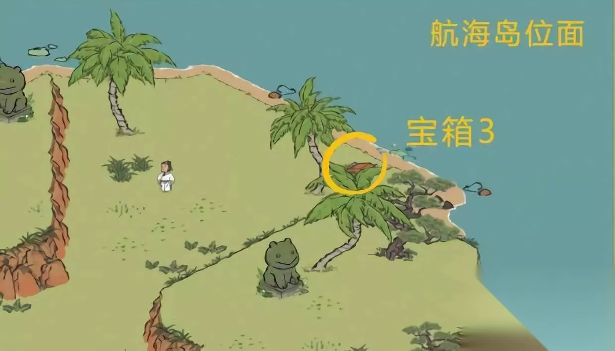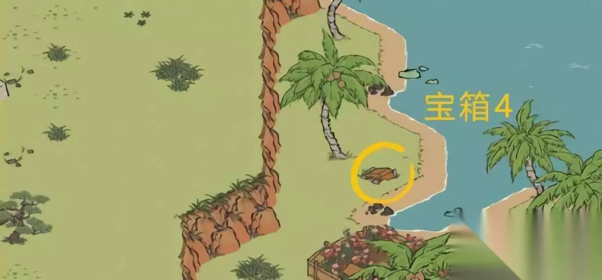 4、第四个宝箱 最后一个宝箱同样也是位于海岛上,位于一棵椰树边上。