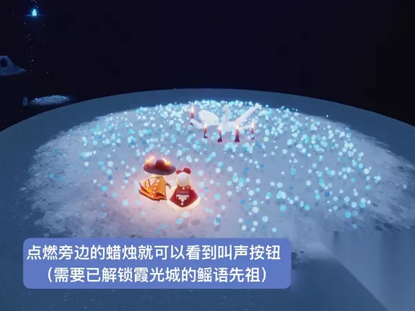 2、需要先解锁霞谷的鲲叫先祖,再点亮周围一圈蜡烛,就可以获得鳐叫了。