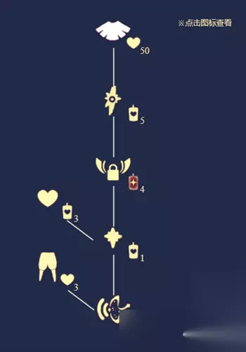二、白斗篷先祖兑换表 1、白色斗篷,兑换需要50颗爱心。 2、五分裤,兑换需3颗爱心。 3、随机魔法,兑换需要6根白蜡烛。 4、永久光翼,解锁需要4根红蜡烛。 5、鳐叫声音,找到先祖后免费获得。 6、兑换总计需要9根白蜡烛,4根红蜡烛,53颗爱心。