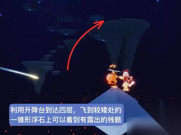 光遇白斗篷先祖复刻攻略 一、白斗篷先祖位置 1、来到禁阁四楼,降落到有骸骨的悬浮台上。