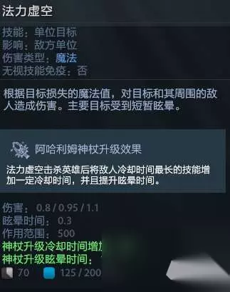 3技能介绍 大招法力虚空,我觉得应该叫核爆(注意一下这个技能虽然是指向性技能,但是是范围伤害),这个技能配合一技能的削蓝,打在法师身上绝对是核爆。(a帐的加成效果并没有什么质的改变,聊胜于无)