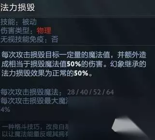 除bug饰品外顶配敌法 二、技能介绍 先说一下敌法的技能 一技能削蓝,简单来说就是你攻击的那个人会减少魔法,因为这个技能的存在,敌法师在线上还是挺恶心对面3号位的,一般来说打近战对线的话,平a基本是敌法师能够占领到优势的