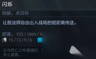 一技能介绍 二技能闪烁,敌法师的核心技能,敌法师无敌的切入能力,能够精准的投入战场。以及他几乎全游戏最强的打钱能力都来自于这个技能。