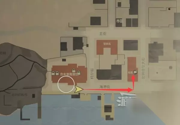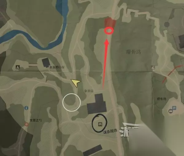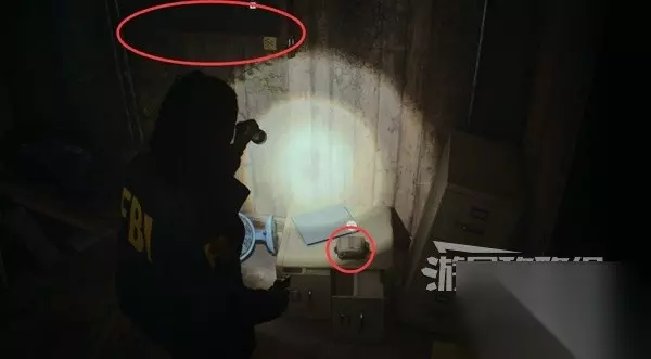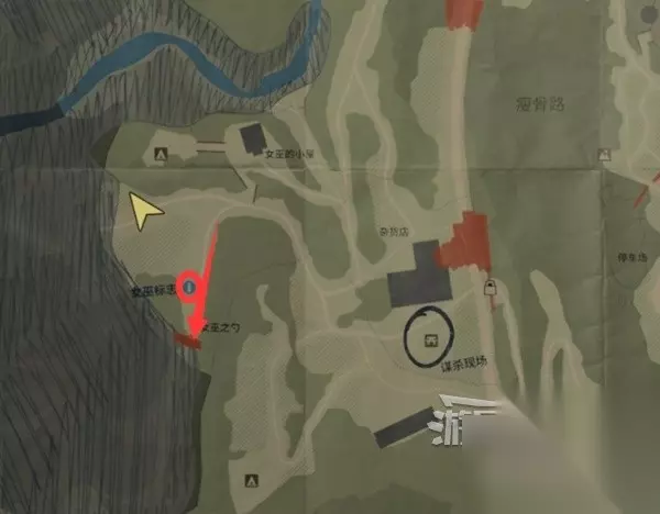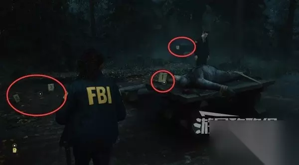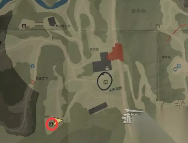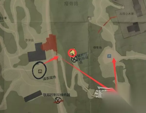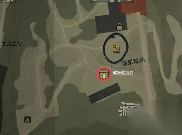 谋杀现场南面一点,下图位置有个保险箱,需要解谜得到密码才能打开拿到【藏匿物】。