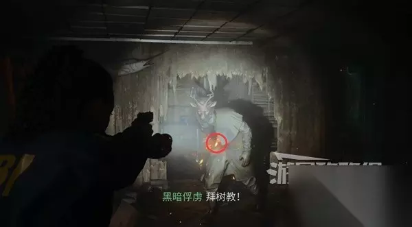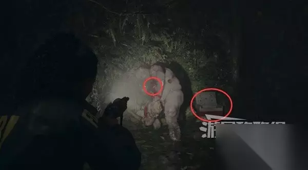 爬上石头后进入红光,钻过洞打胖子。 胖子很厚,必须先用强化手电筒破除黑暗物质,露出胸口的红色弱点,然后再用霰弹枪喷。当胖子发红光时赶紧跑远些躲避,附近会有不少补给箱,注意多捡捡。