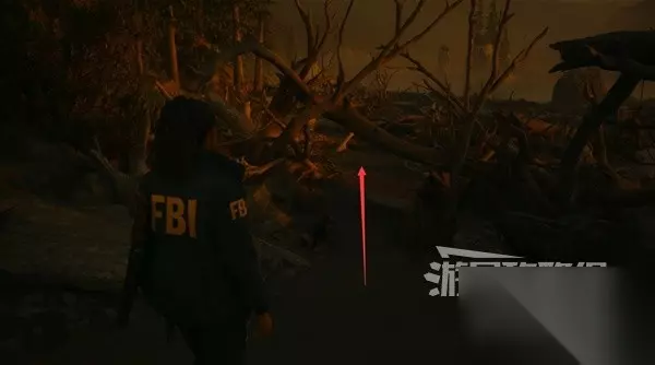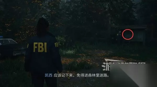 跟随凯西离开停车场往北进入树林,和马利根副警长对话后钻过拦网的洞。